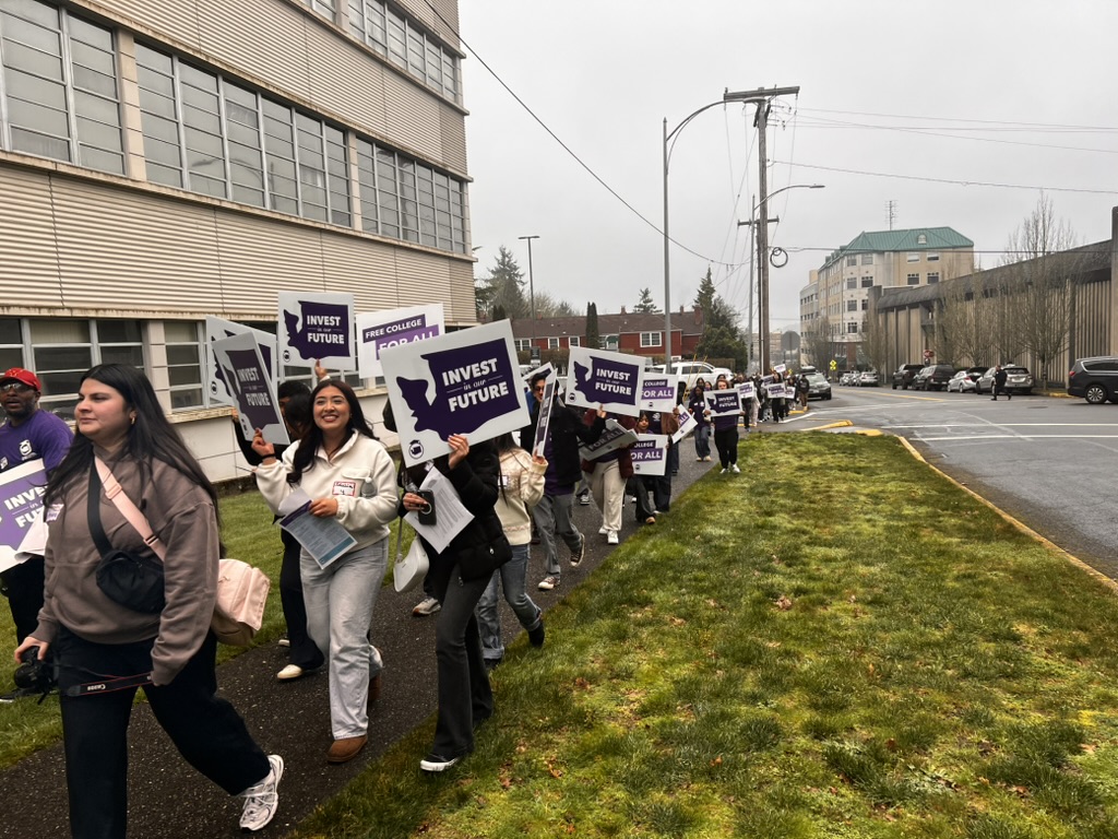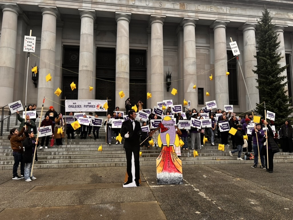 Just before noon, the group marched together to the Capitol Campus, carrying signs, chants, and a shared message: No cuts to students. Fund higher education. On the South Steps, students, educators, and allies gathered for a powerful rally that centered lived experience and collective demands.