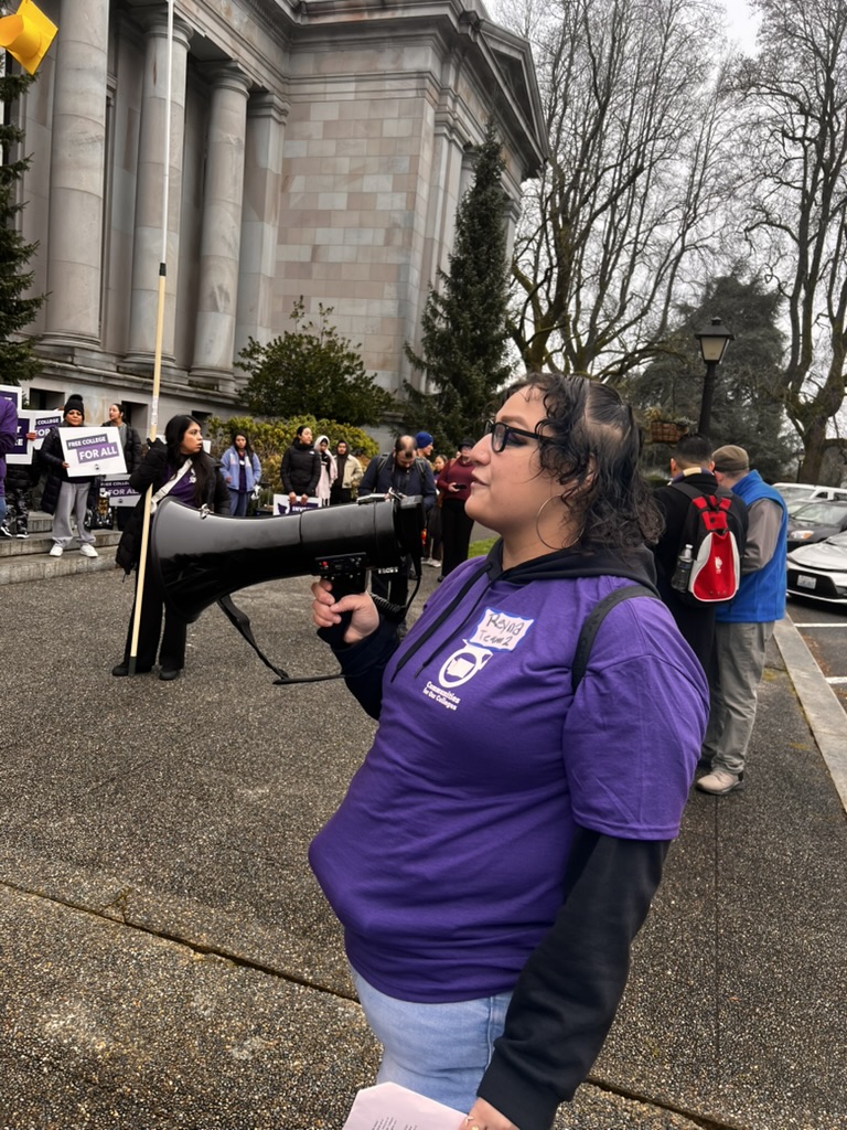 Reyna, a parenting student returning to college after more than a decade away, spoke powerfully about balancing school, work, and raising her young daughter. “Survival is the biggest barrier,” she said. “When your basic needs aren’t met, school becomes almost impossible.” Reyna called on lawmakers to pass SB 6227 and invest in parenting students, noting that “when Washington invests in parenting students, it’s not just helping parents — it’s helping children, families, and entire communities thrive.”