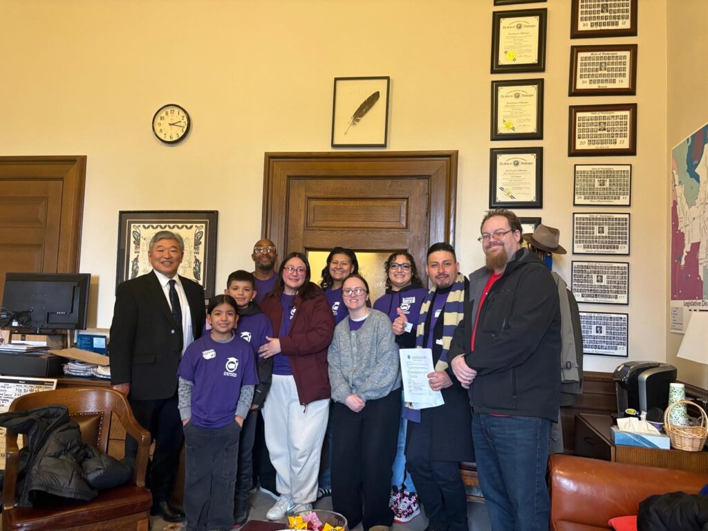 The day began at the Washington State Labor Council, where participants gathered to build relationships, receive legislative updates, and ground themselves in shared purpose. C4C leaders reminded the room that we are a statewide, multiracial coalition of students, faculty, staff, unions, and community organizations, organizing to protect, fully fund, and transform Washington’s community and technical colleges so they work for the students who rely on them most.